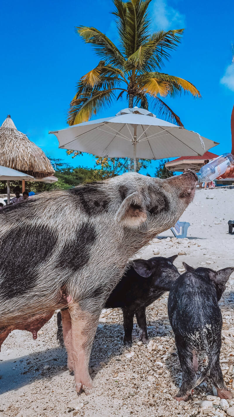 De grootste toeristische attractie momenteel op Grote Knip zijn de varkentjes die hier hun thuis hebben gevonden. Ze lopen de hele dag door tussen de strandstoelen, zoeken af en toe verkoeling in zee of rusten wat onder de bomen. Ze zijn erg gewend aan mensen en ongevaarlijk. Maar laat geen eten , plastiek waterflessen of open tassen rondslingeren want voor je het weet zijn de kleine krulstaarten er met alles vandoor.
